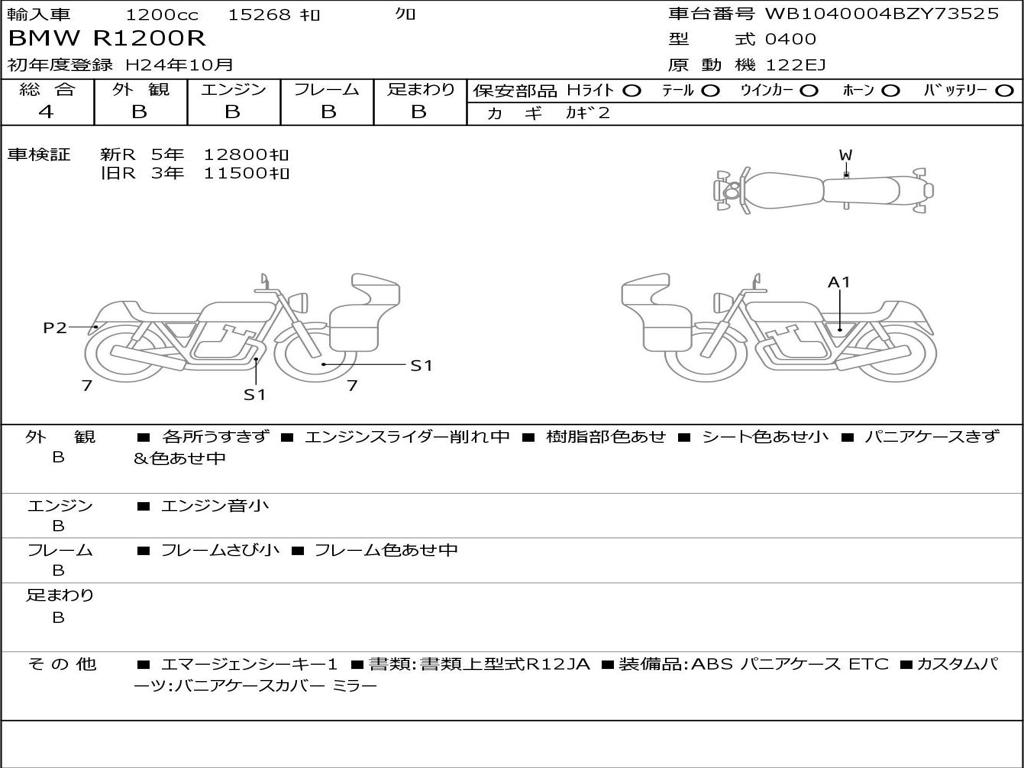 | Номер рамы / VIN | WB1040004BZY73525 |
