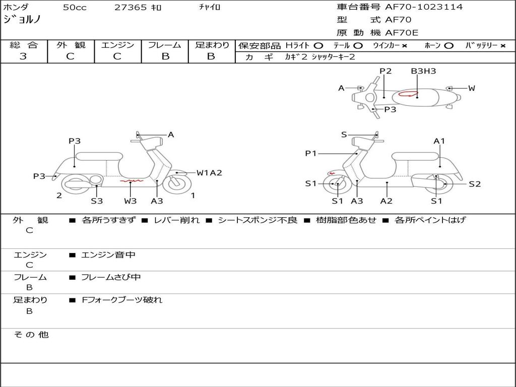 | Номер рамы / VIN | AF70-1023114 |