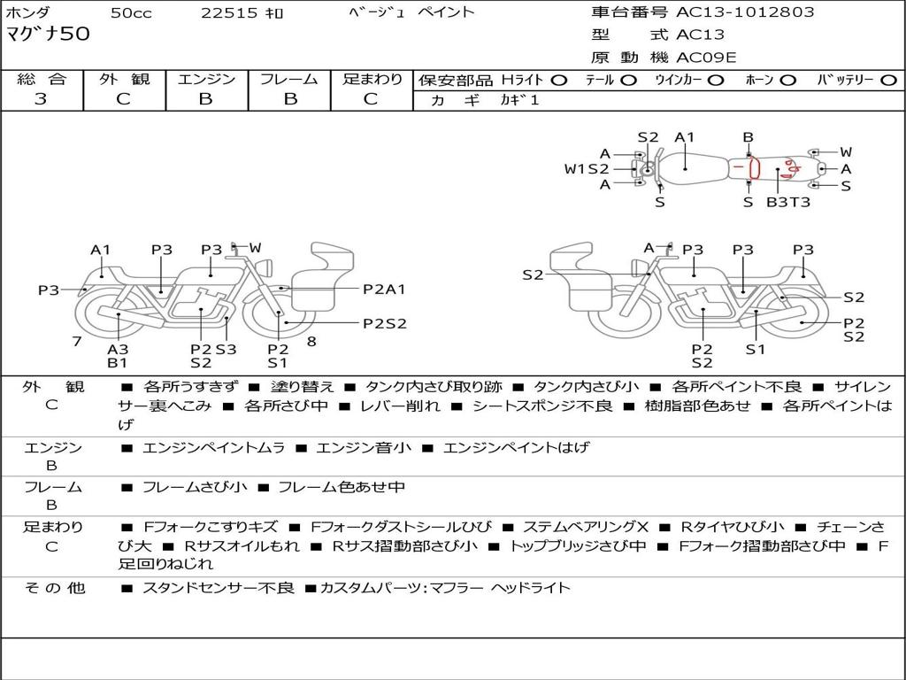 | Номер рамы / VIN | AC13-1012803 |