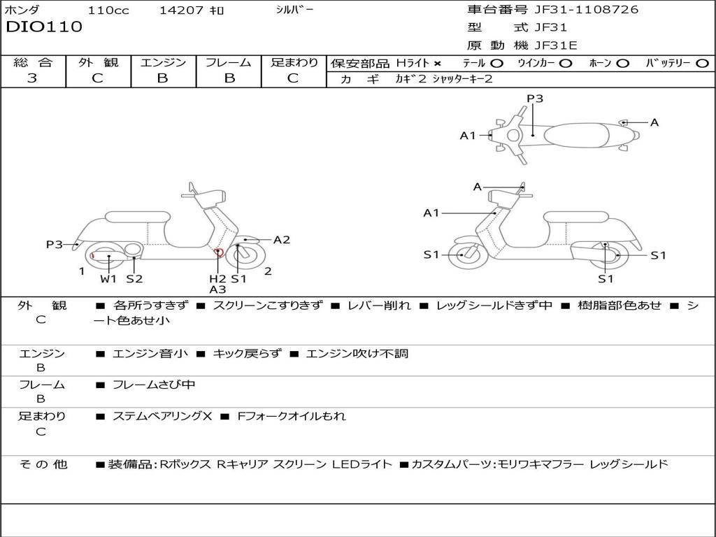 | Номер рамы / VIN | JF31-1108726 |