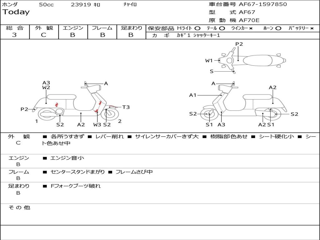 | Номер рамы / VIN | AF67-1597850 |