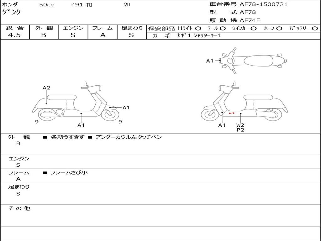 | Номер рамы / VIN | AF78-1500721 |