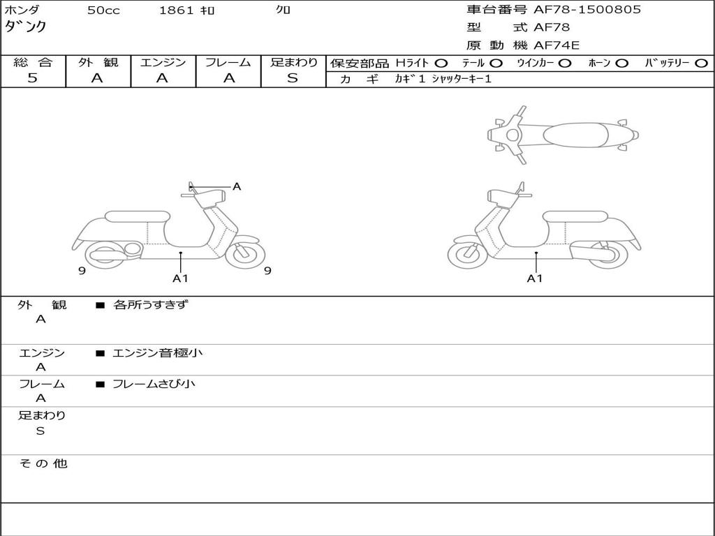 | Номер рамы / VIN | AF78-1500805 |