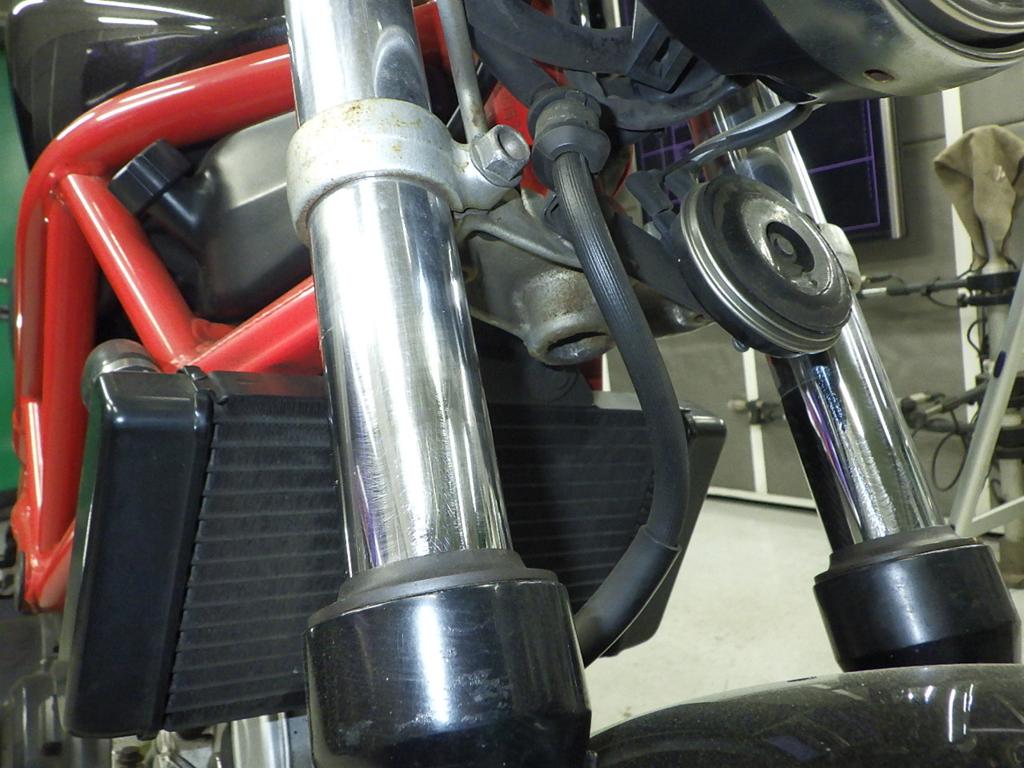 | внешняя часть вилки | царапины, следы коррозии <много>, неисправен сальник |