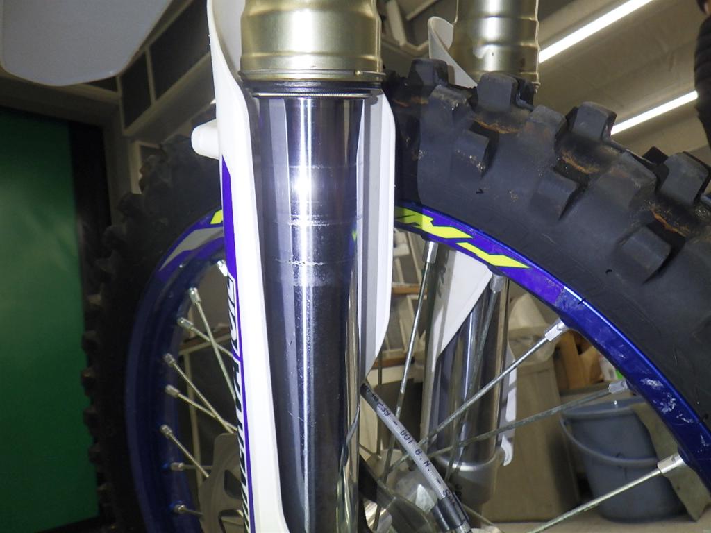 | внешняя часть вилки | царапины, потек масла <много> |