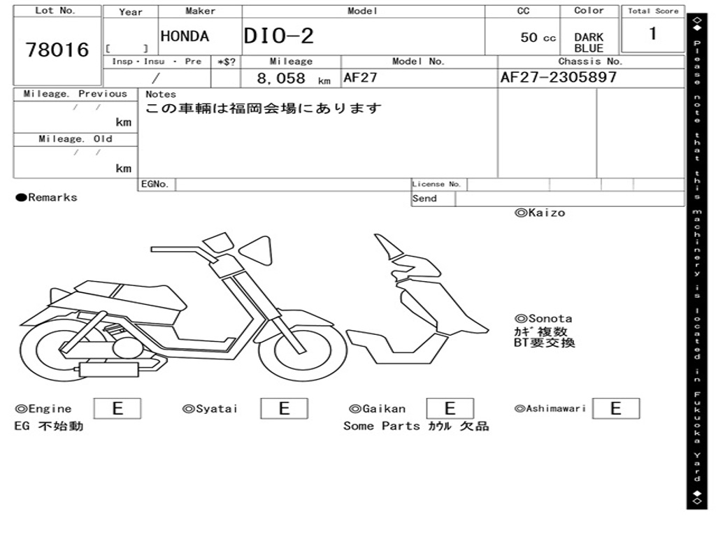 | Номер рамы / VIN | AF27-2305897 |