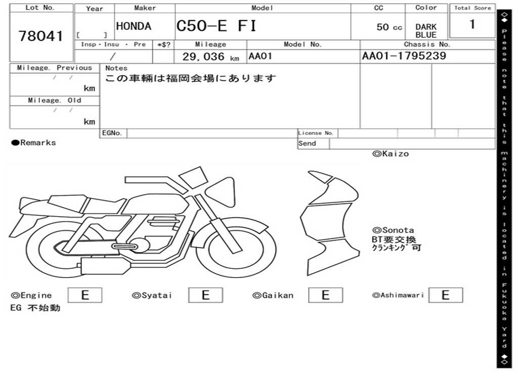| Номер рамы / VIN | AA01-1795239 |