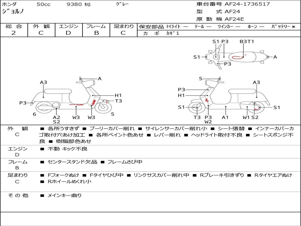 | Номер рамы / VIN | AF24-1736517 |