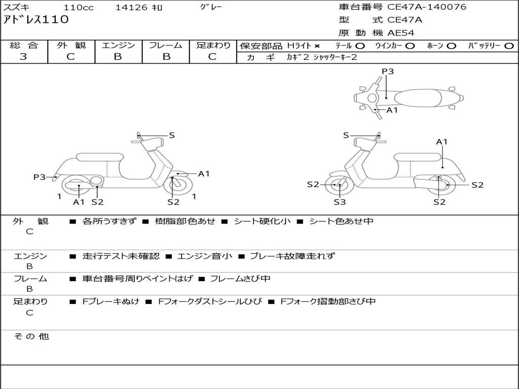 | Номер рамы / VIN | CE47A-140076 |