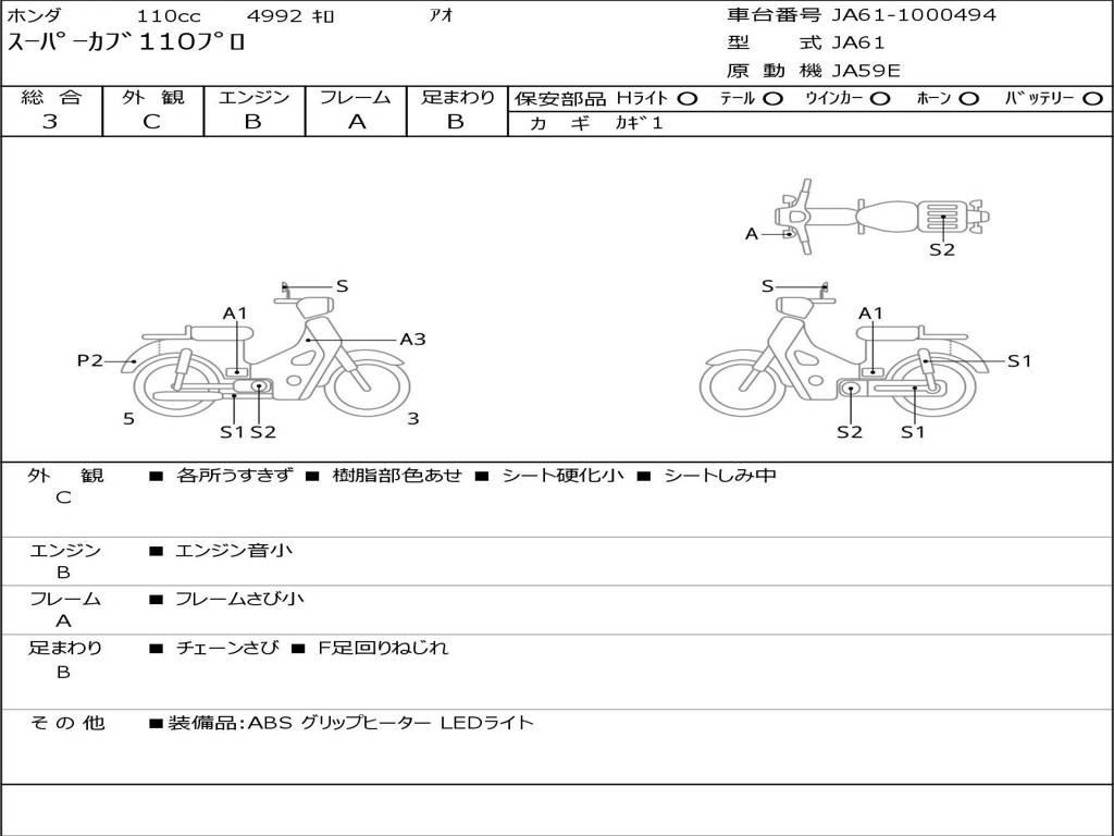 | Номер рамы / VIN | JA61-1000494 |