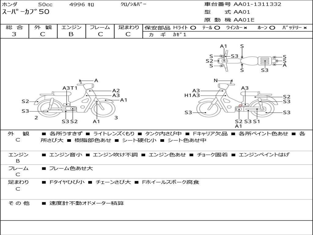 | Номер рамы / VIN | AA01-1311332 |