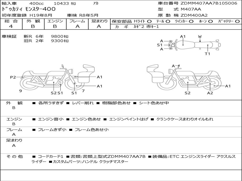 | Номер рамы / VIN | ZDMM407AA7B105006 |