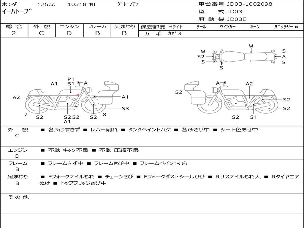 | Номер рамы / VIN | JD03-1002098 |