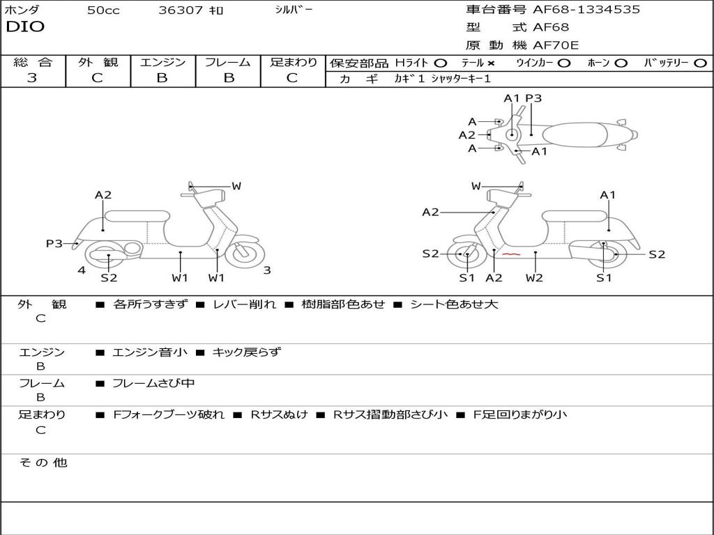 | Номер рамы / VIN | AF68-1334535 |