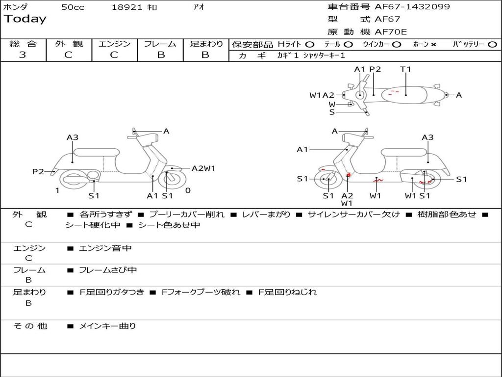 | Номер рамы / VIN | AF67-1432099 |