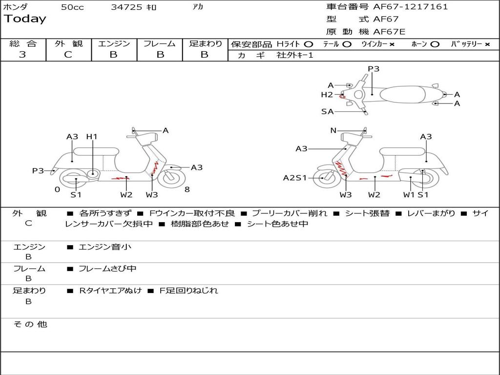 | Номер рамы / VIN | AF67-1217161 |
