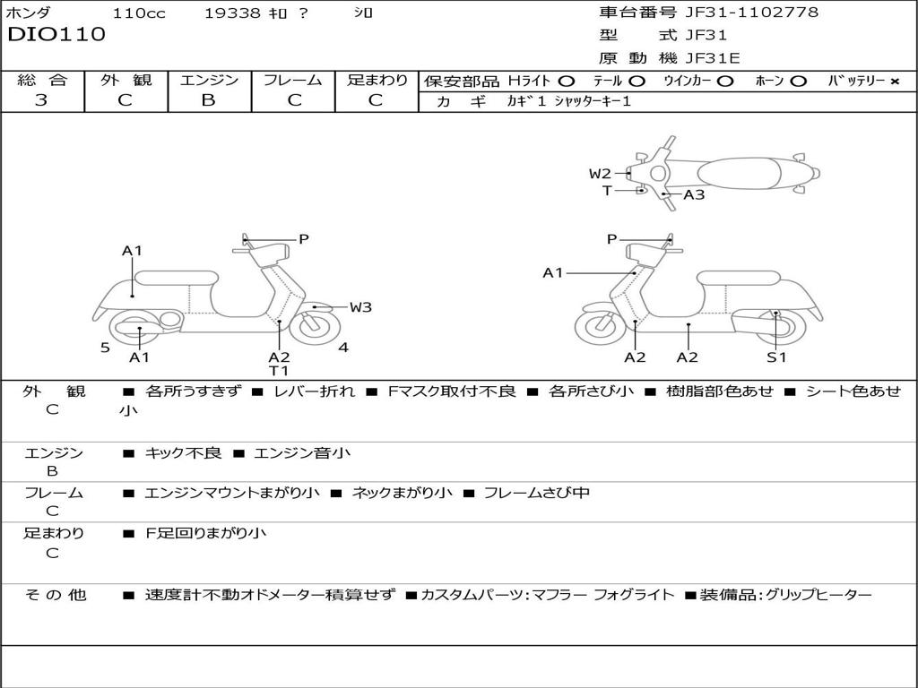 | Номер рамы / VIN | JF31-1102778 |