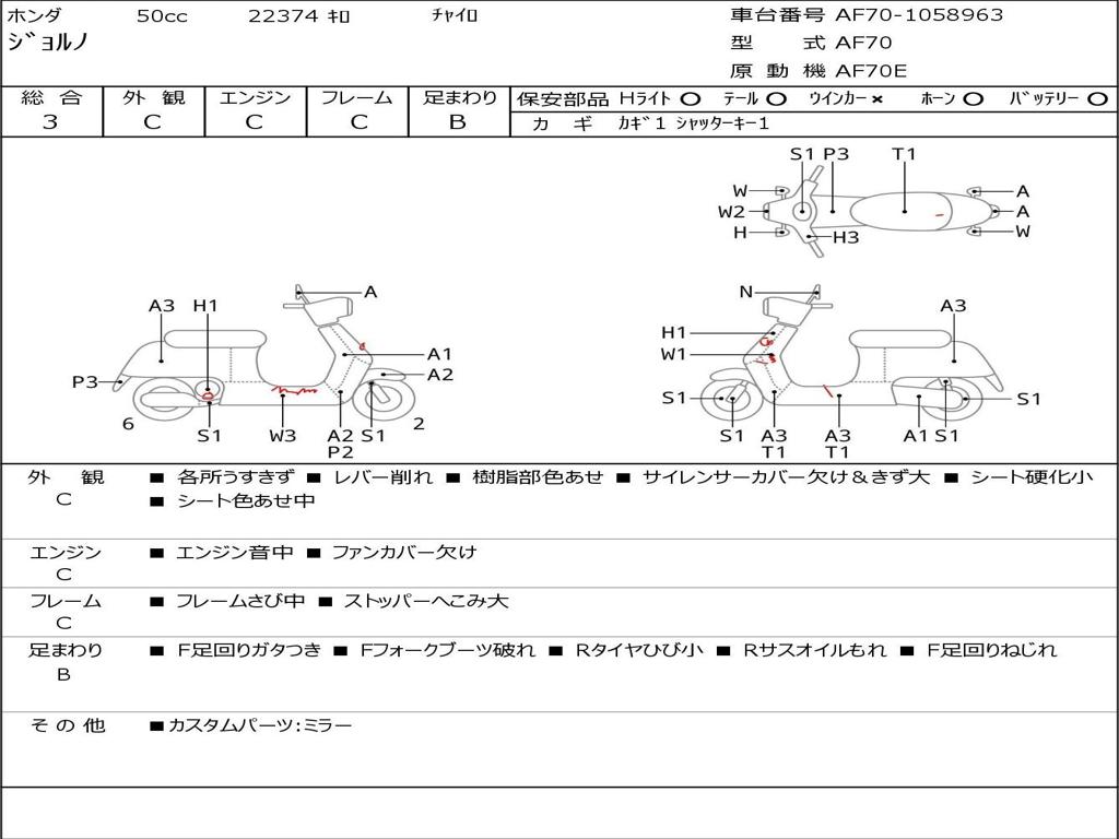 | Номер рамы / VIN | AF70-1058963 |