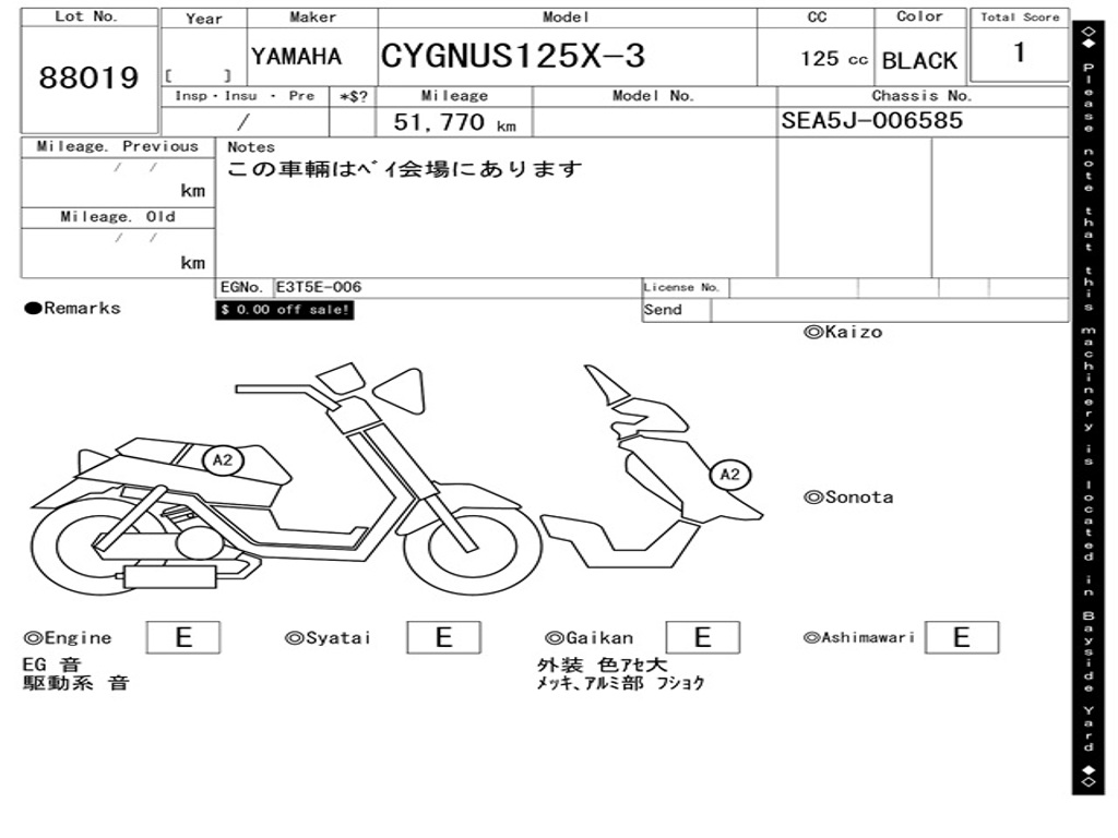 | Номер рамы / VIN | SEA5J-006585 |