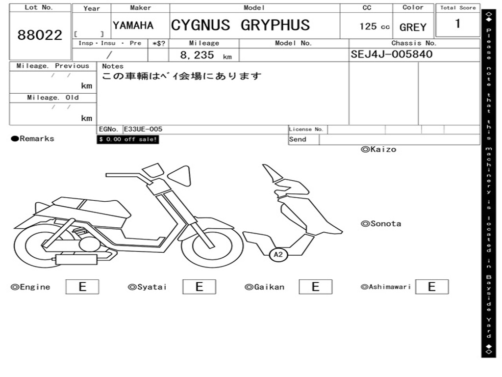 | Номер рамы / VIN | SEJ4J-005840 |