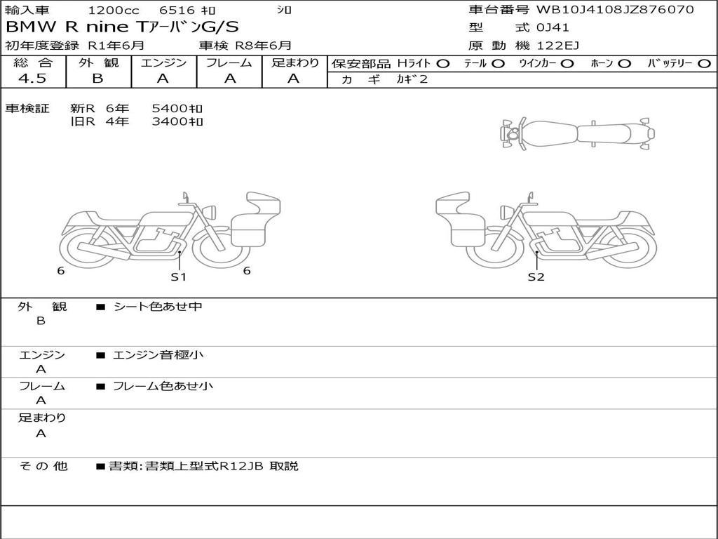 | Номер рамы / VIN | WB10J4108JZ876070 |