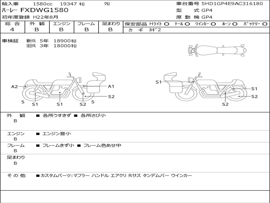 | Номер рамы / VIN | 5HD1GP4E9AC316180 |