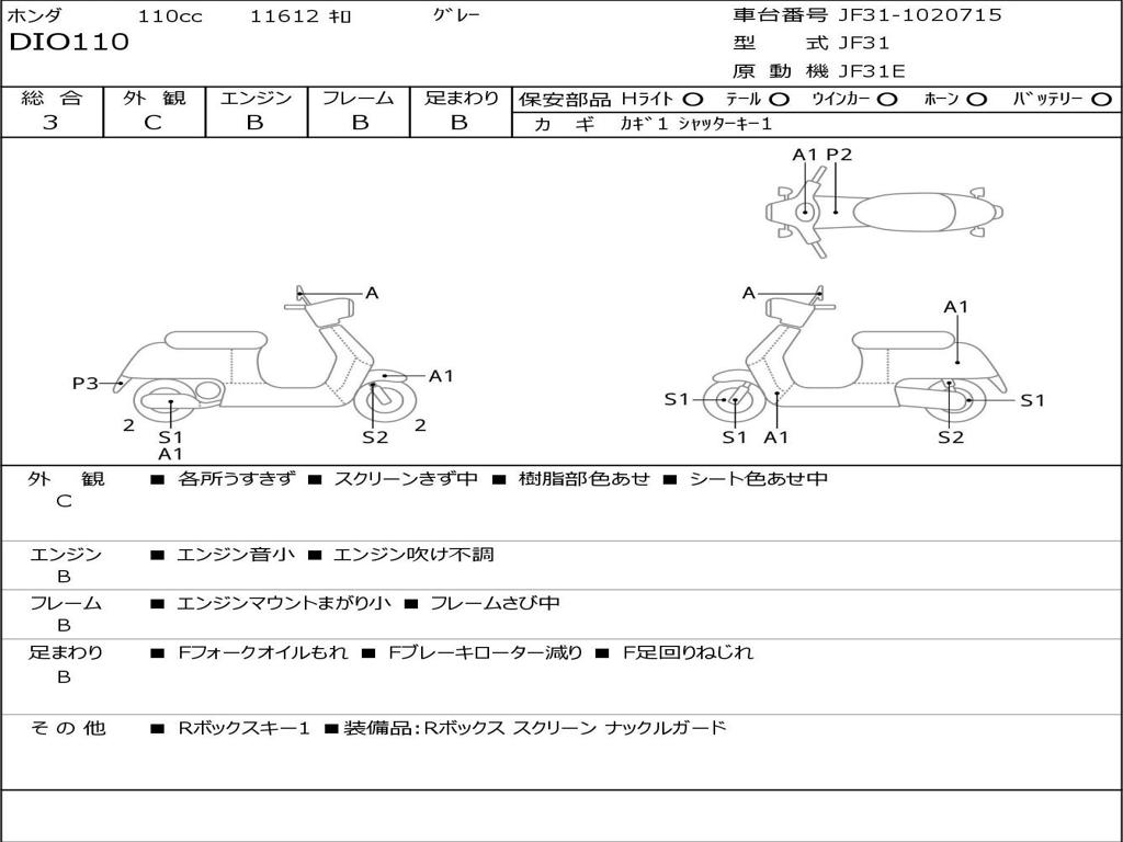 | Номер рамы / VIN | JF31-1020715 |