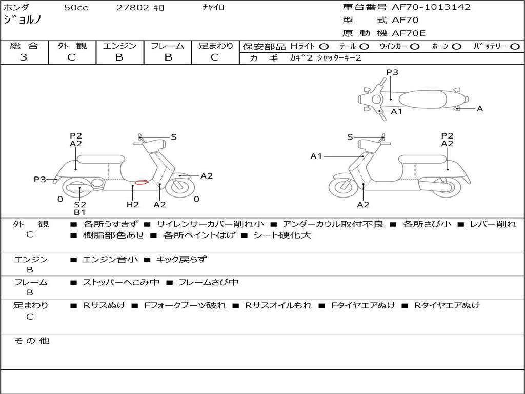 | Номер рамы / VIN | AF70-1013142 |