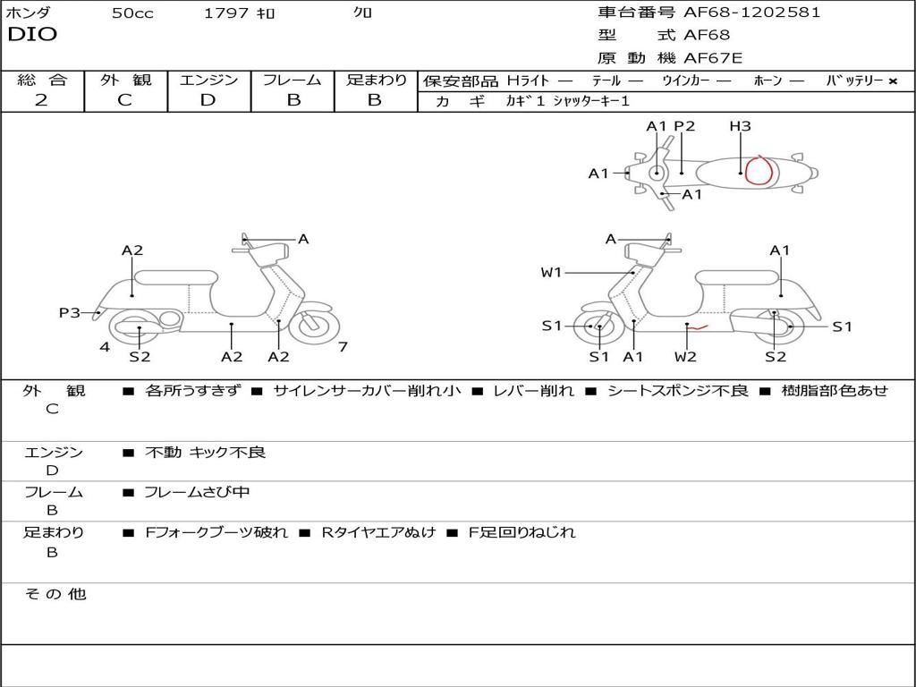 | Номер рамы / VIN | AF68-1202581 |