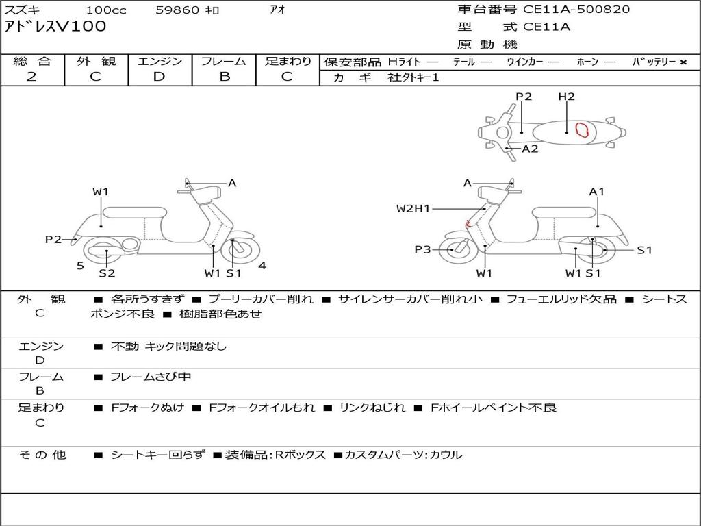 | Номер рамы / VIN | CE11A-500820 |