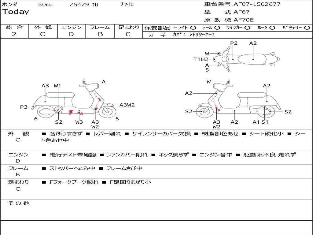 | Номер рамы / VIN | AF67-1502677 |