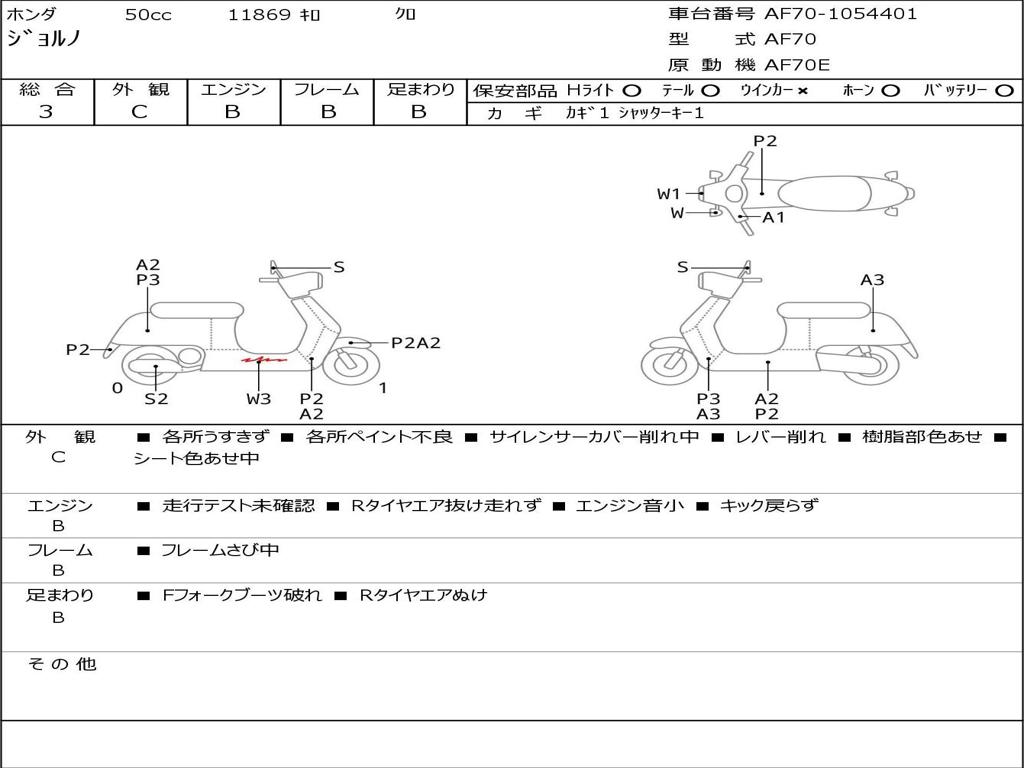 | Номер рамы / VIN | AF70-1054401 |