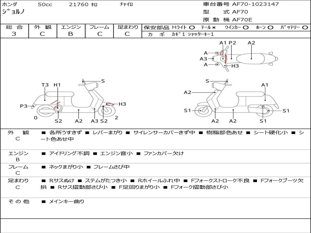 | Номер рамы / VIN | AF70-1023147 |