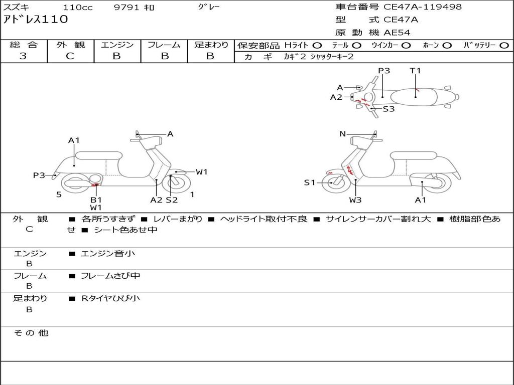| Номер рамы / VIN | CE47A-119498 |