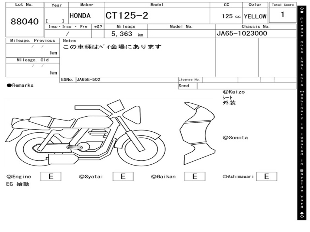 | Номер рамы / VIN | JA65-1023000 |