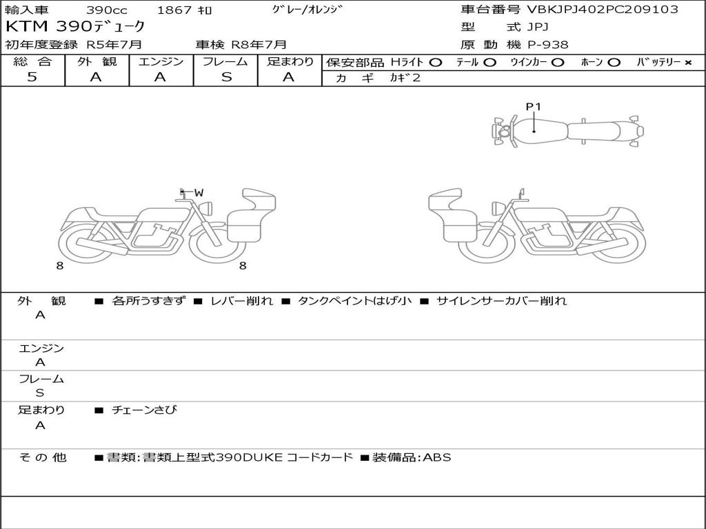 | Номер рамы / VIN | VBKJPJ402PC209103 |