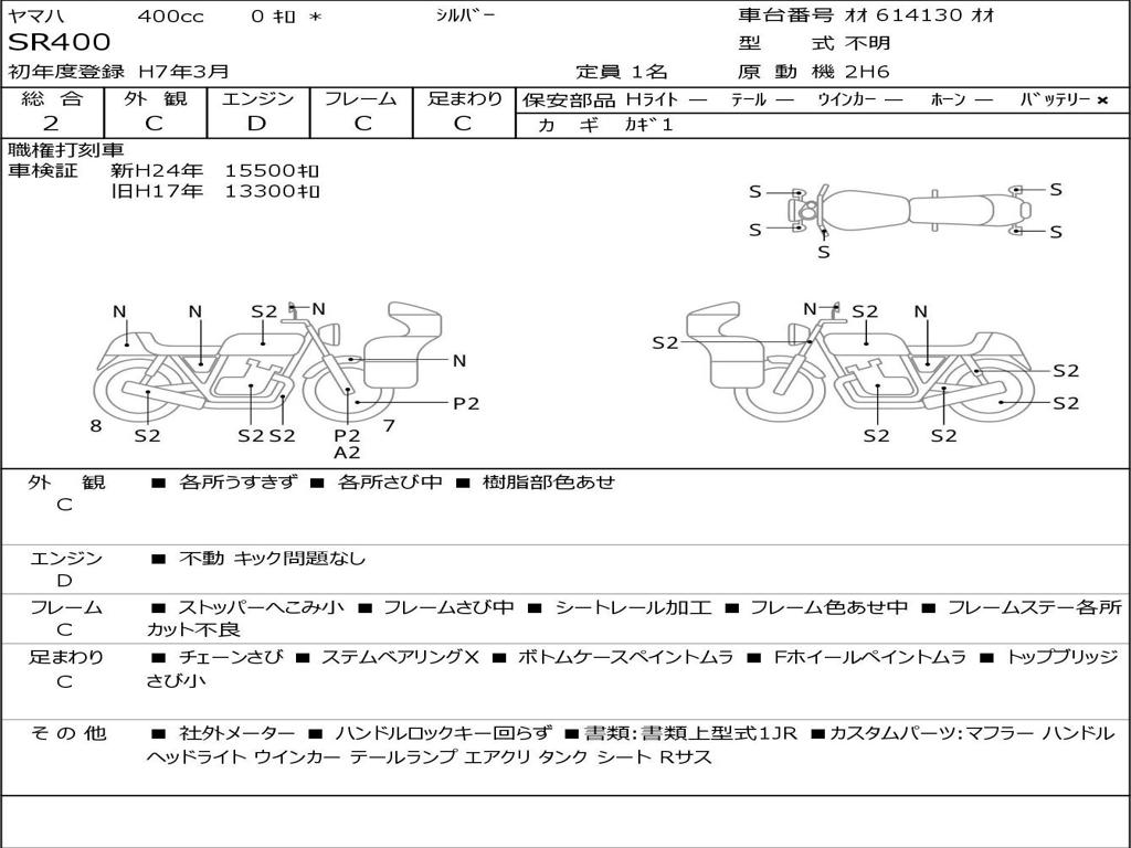 | Номер рамы / VIN | オオ 614130 オオ |