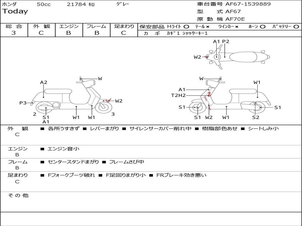 | Номер рамы / VIN | AF67-1539889 |