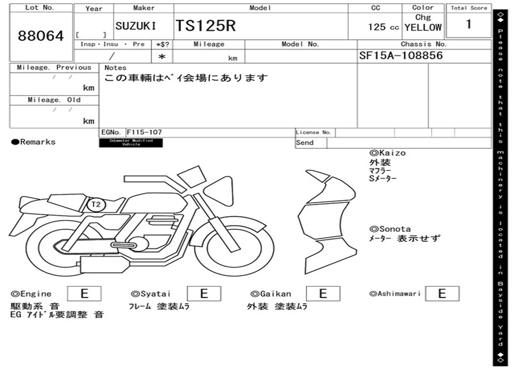 | Номер рамы / VIN | SF15A-108856 |
