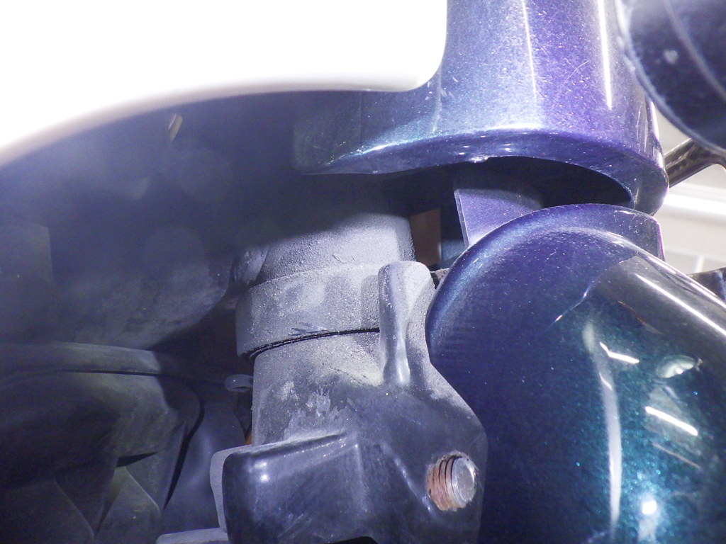 | внешняя часть вилки | царапины, потек масла <много>, слабый |