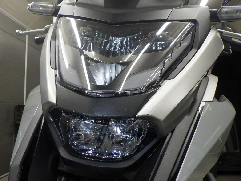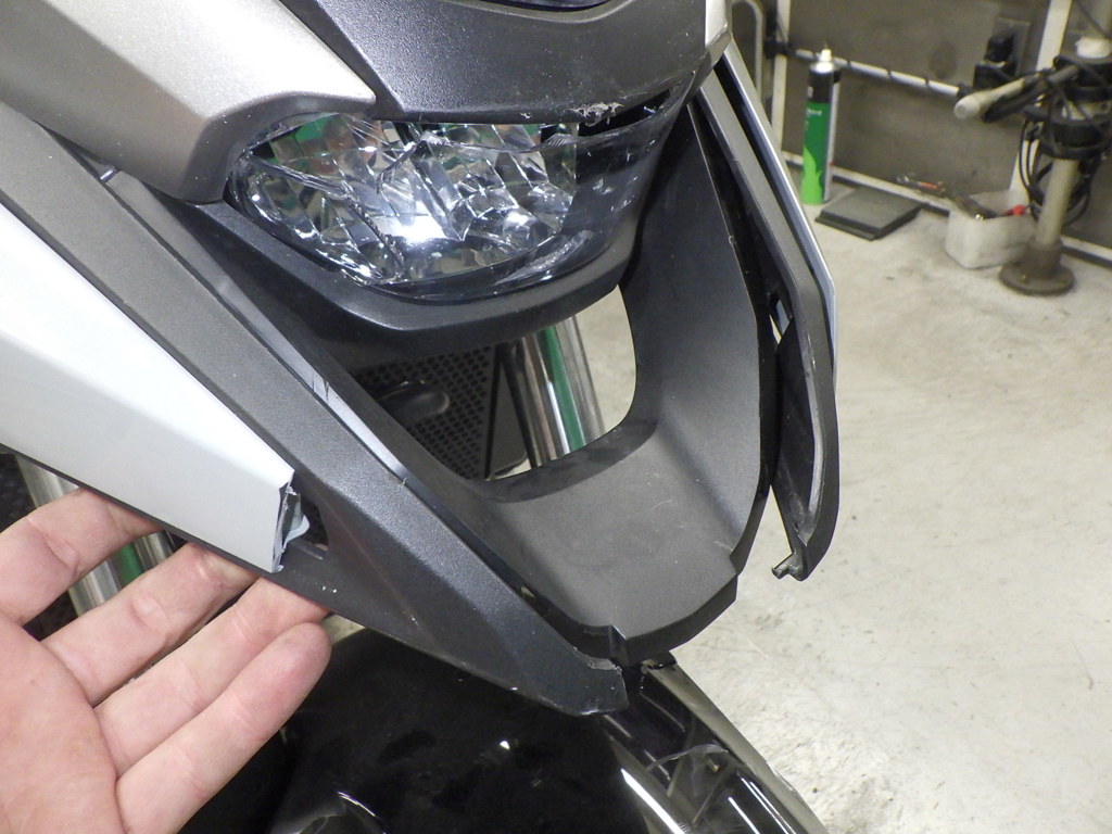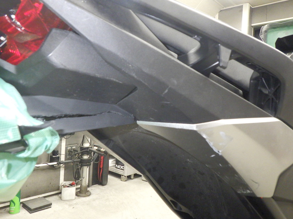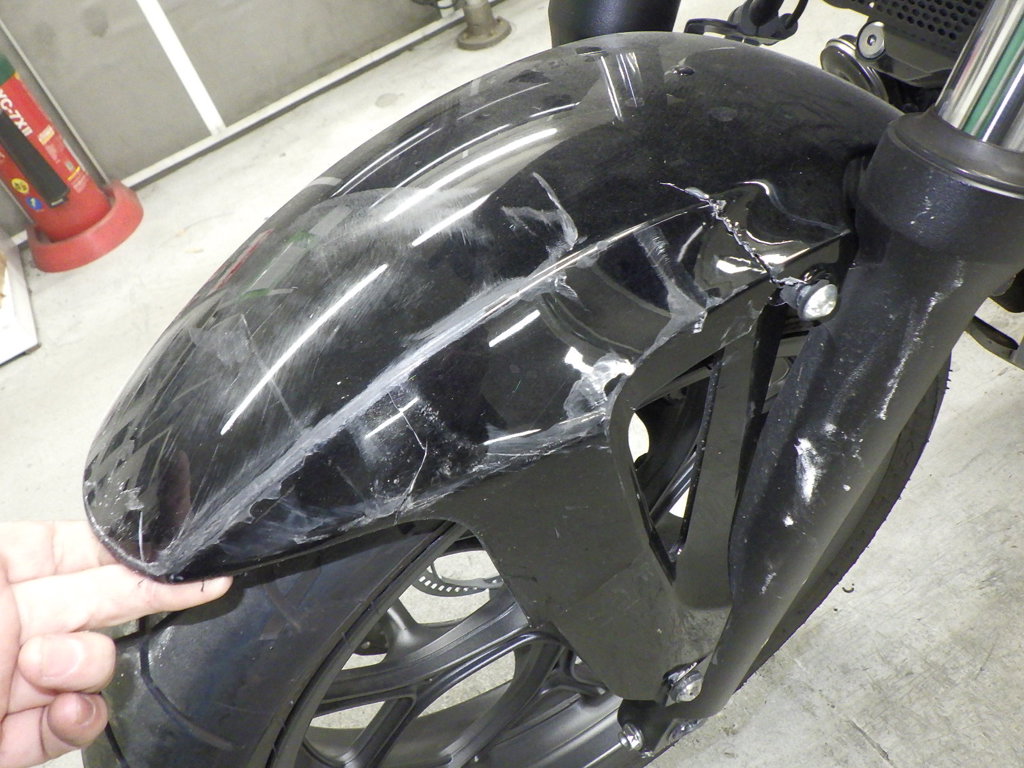 | переднее крыло | царапины <много>, трещины <много>, неисправен шарнир |