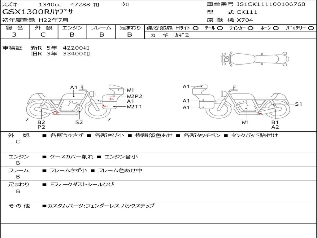 | Номер рамы / VIN | JS1CK111100106768 |