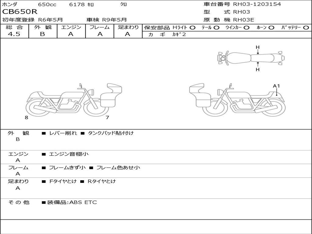 | Номер рамы / VIN | RH03-1203154 |