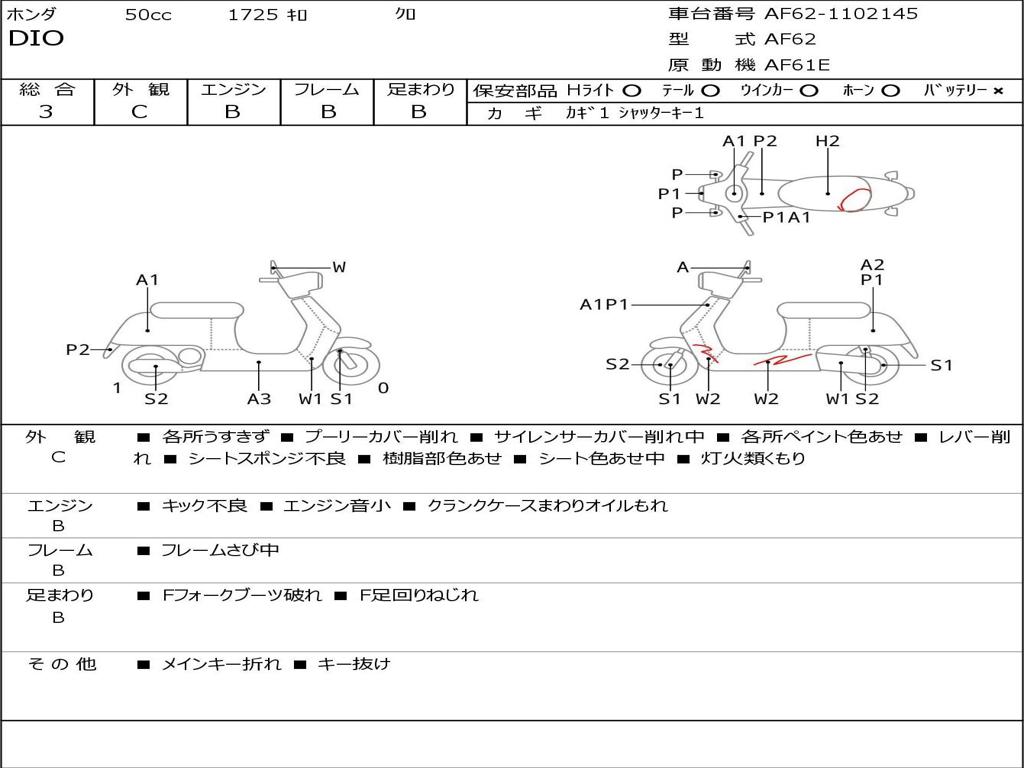 | Номер рамы / VIN | AF62-1102145 |