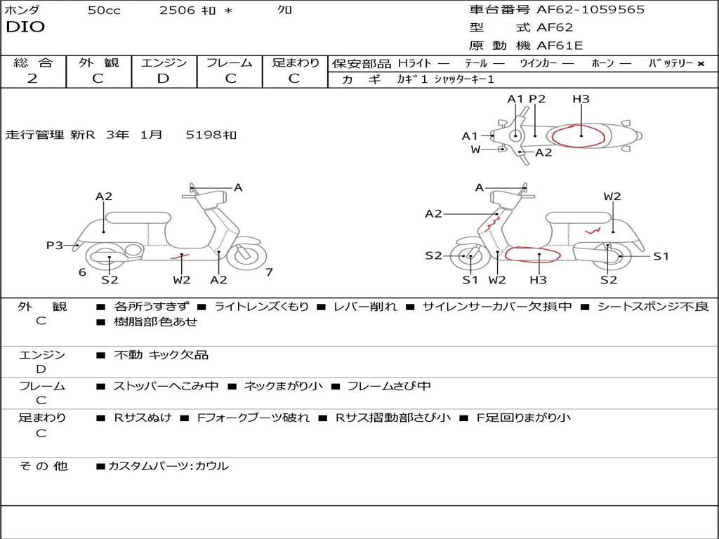 | Номер рамы / VIN | AF62-1059565 |