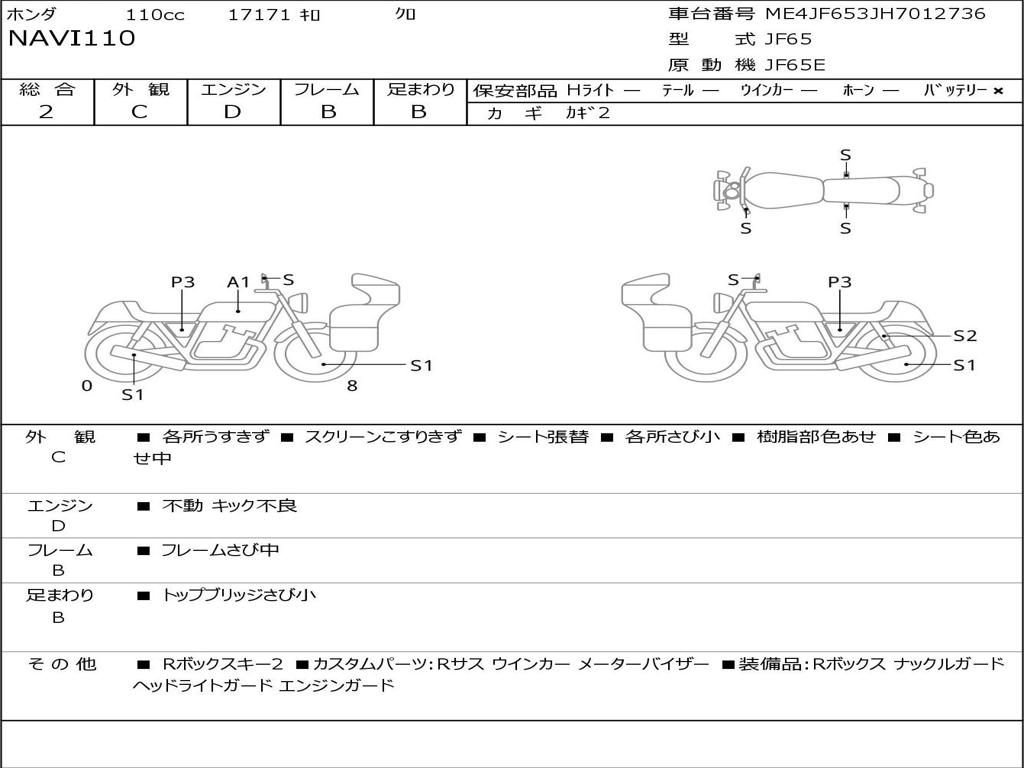 | Номер рамы / VIN | ME4JF653JH7012736 |