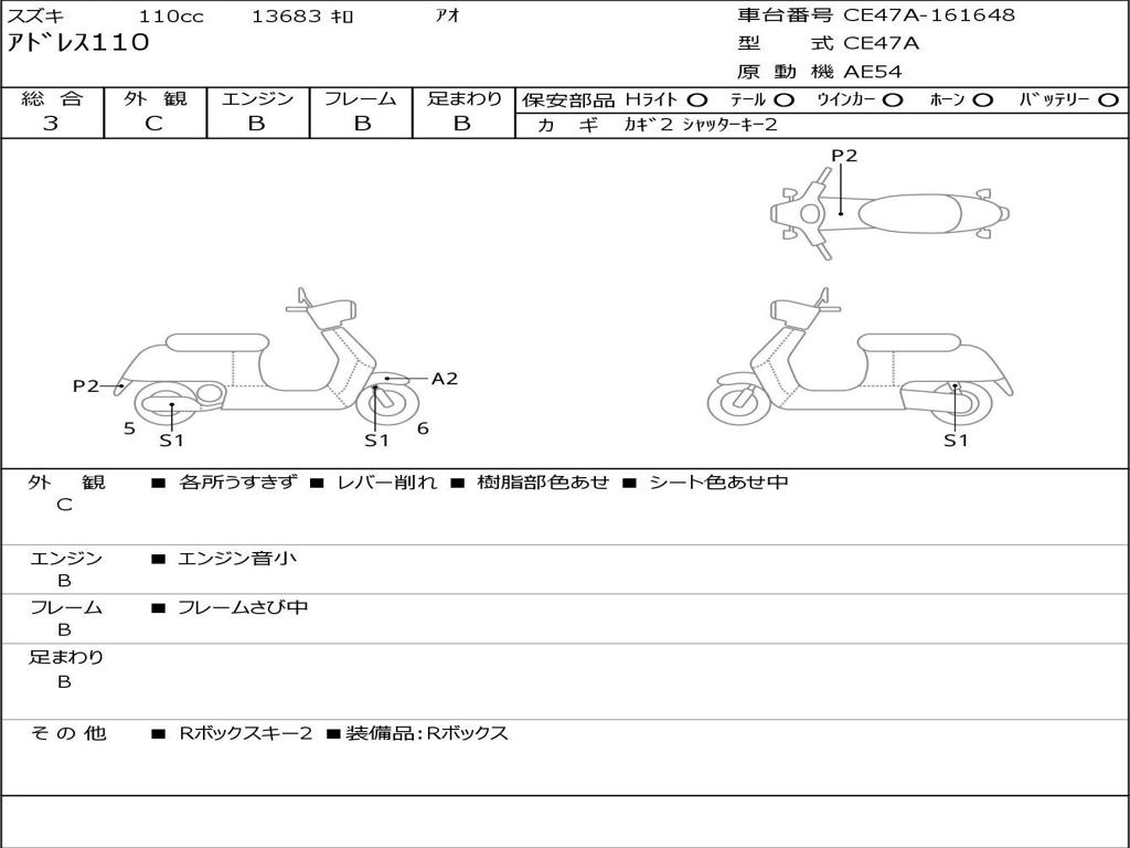 | Номер рамы / VIN | CE47A-161648 |