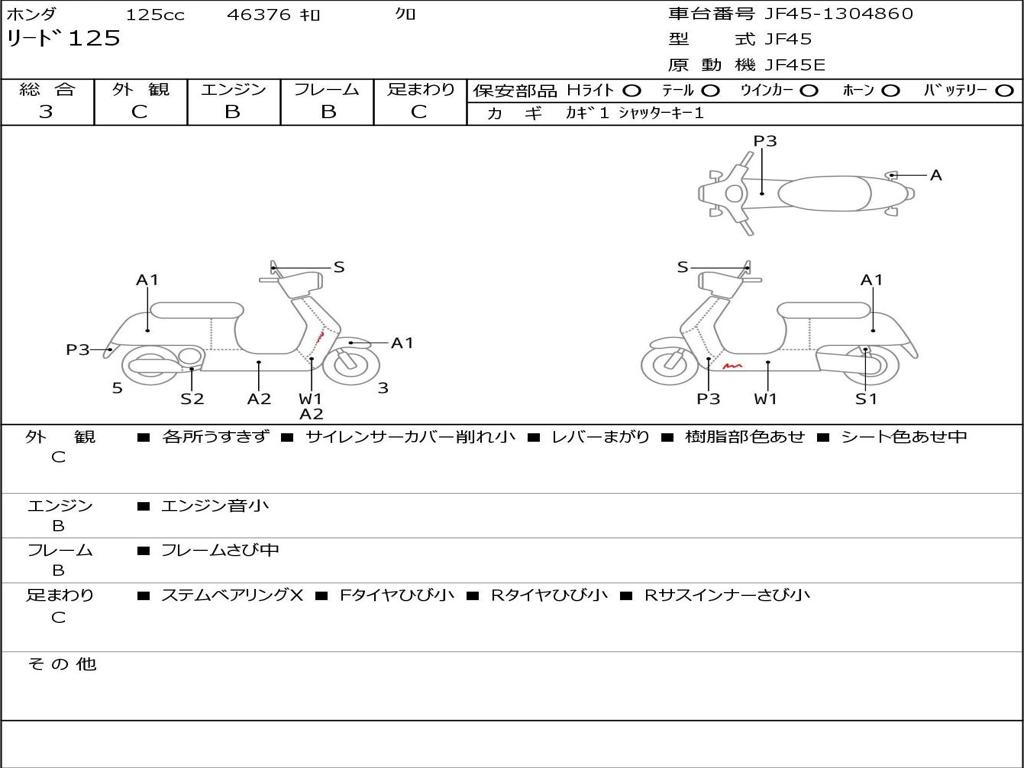 | Номер рамы / VIN | JF45-1304860 |