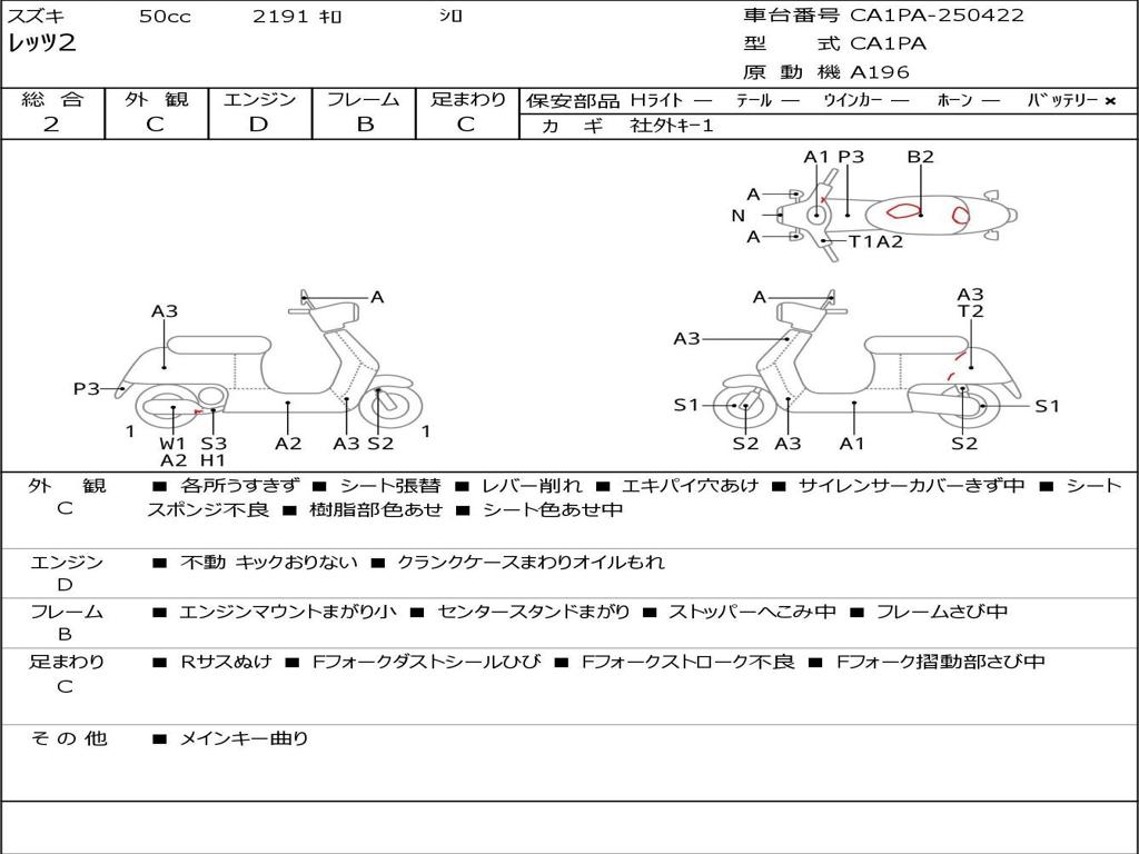 | Номер рамы / VIN | CA1PA-250422 |
