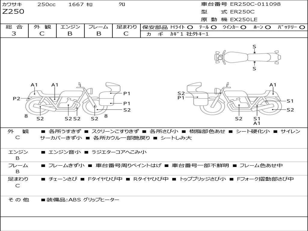 | Номер рамы / VIN | ER250C-011098 |